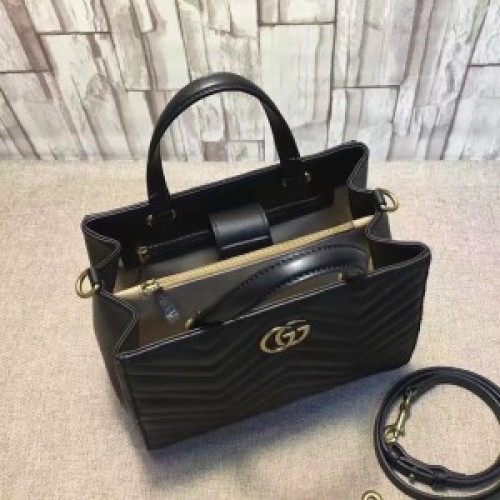 Gucci Black GG Marmont Small Matelasse Top Handle Bag