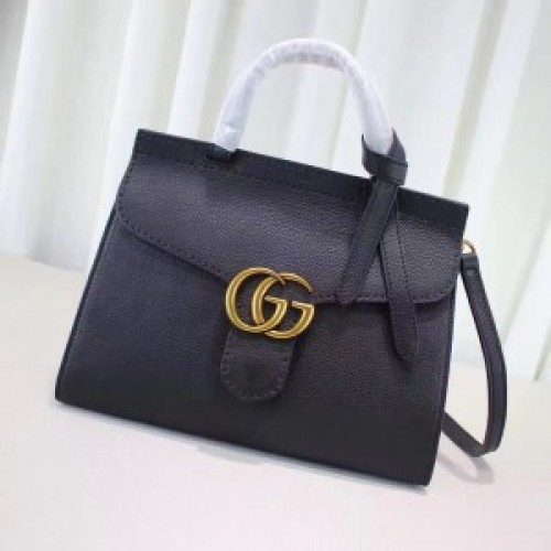 Gucci 421890 GG Marmont Leather Top Handle Bag Black