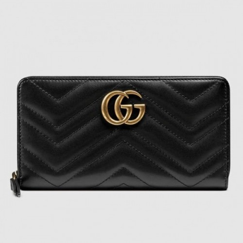 Gucci Black GG Marmont Zip Around Wallet With Pearls
