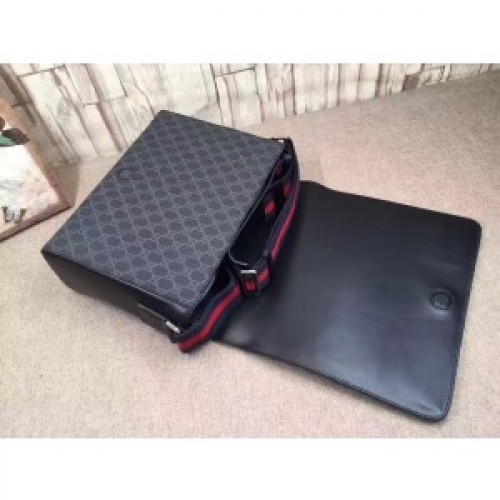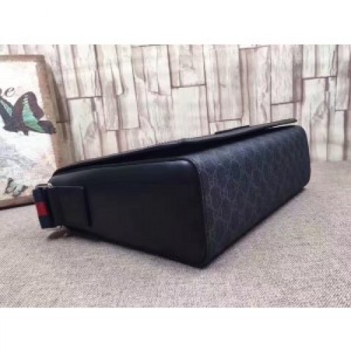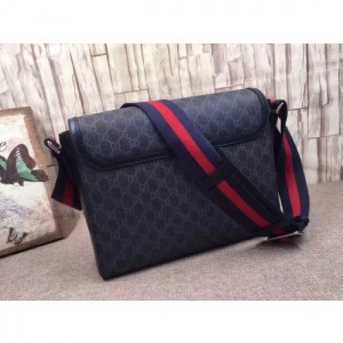 Gucci Black GG Supreme Flap Messenger Bag