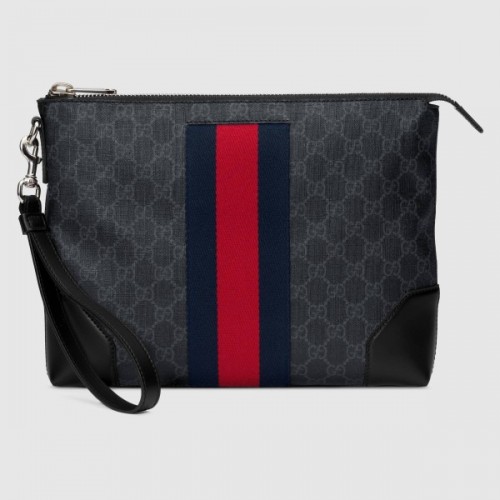 Gucci Black GG Supreme Web Portfolio Pouch