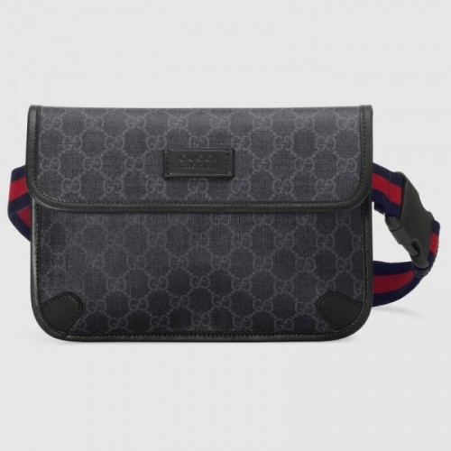 Presented in a black and grey combination, the GG motif takes on a contemporary look in a slim belt bag. The design is further enriched with an adjustable nylon strap featuring the Web in blue and red.