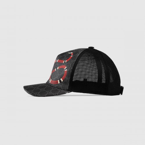 Tags: Gucci Black/grey GG Supreme canvas with Kingsnake print baseball hat, ,