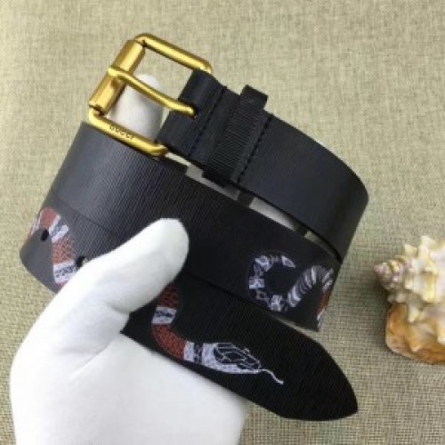 Gucci Black Kingsnake Print Leather Belt With Square Buckle