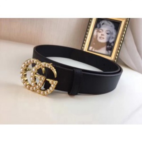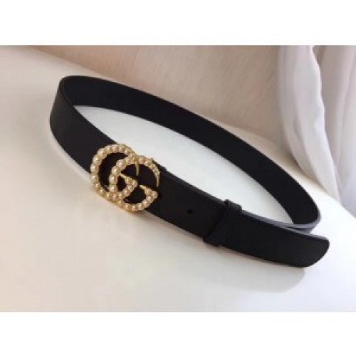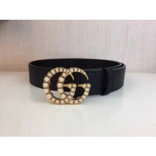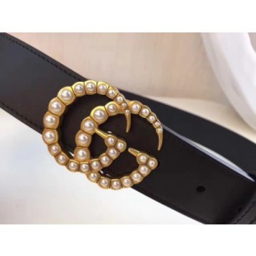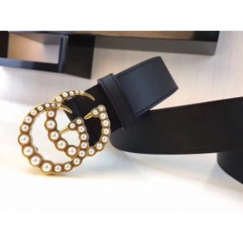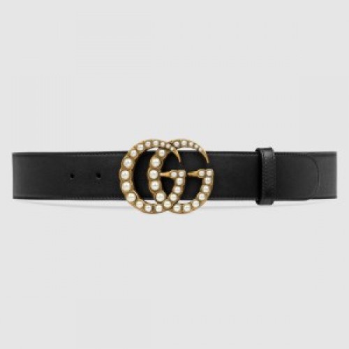 Gucci Black Leather Belt With Pearl Double G Buckle