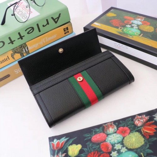 The continental wallet combines the signature Double G detail with the Web stripe—a timeless pairing that speaks to Gucci's roots. Crafted from textured leather, the accessory pays tribute to the retro inspired references felt throughout the world of Ophidia.