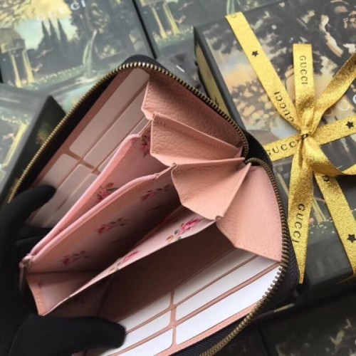 Gucci Black Leather Zip Around Wallet With Bow