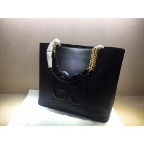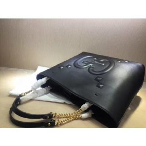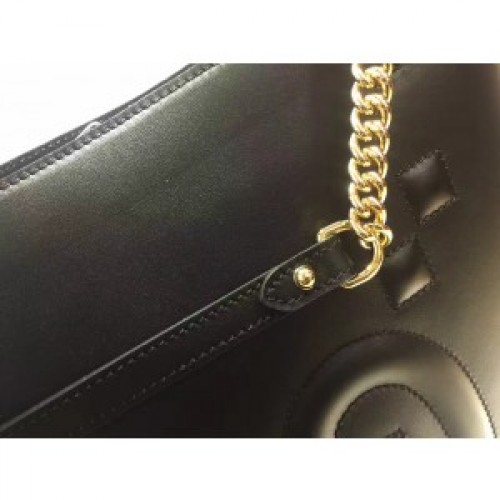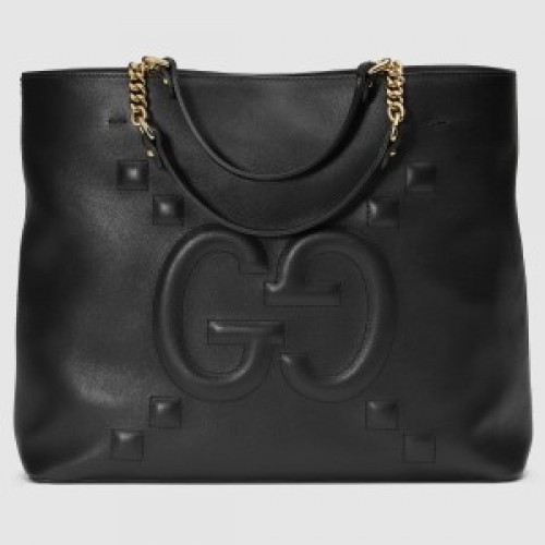A leather tote with a large embossed GG detail reminiscent of the Gucci Signature pattern. The chain straps have a leather shoulder detail. Made in smooth, soft leather with a natural shine and supple appearance.