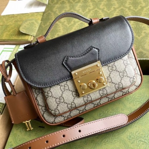 Gucci Black Padlock Mini Bag In GG Supreme Canvas