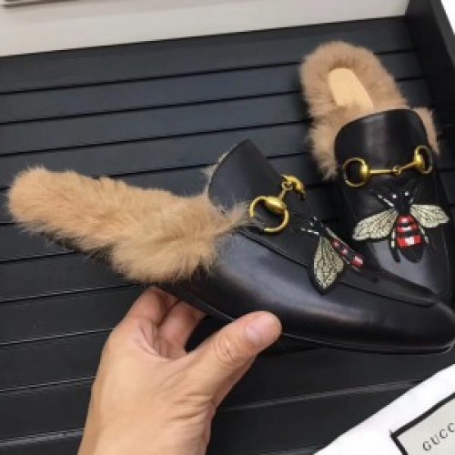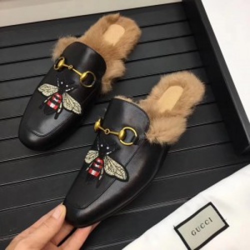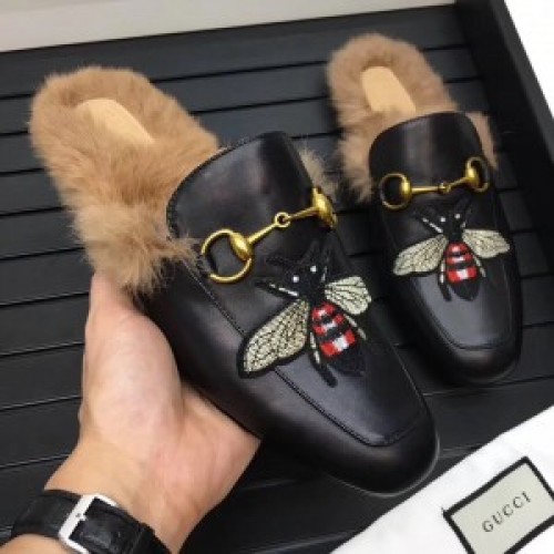 A signature Gucci silhouette, favoured by A-listers and fashion insiders alike, the Princetown loafer is lined with genuine kangaroo fur for supreme comfort. This pair is accented with bee embroidery and finished with the brand's signature D-bar metal hardware. Offering endless styling options, they would wear well with crisp tailoring for a modern take on formal dressing.