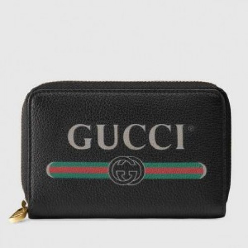Gucci Black Print Leather Zip Around Wallet