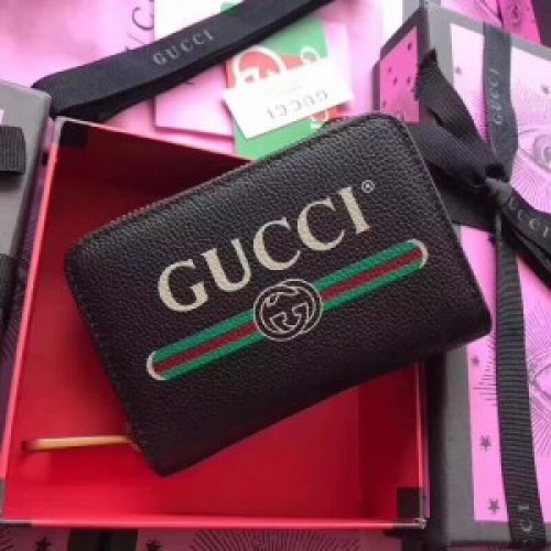 Gucci Black Print Leather Card Case