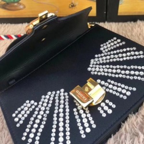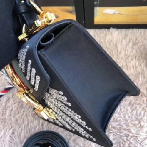 Gucci Black Satin Sylvie Crystal Mini Bag