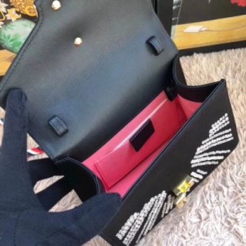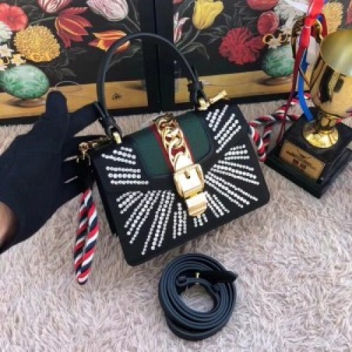 Gucci Sylvie Embroidered Mini Bag 470270 Black Leather 2017