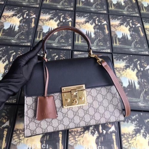 Tags: Gucci Black Small Padlock GG Supreme Top Handle Bag, ,