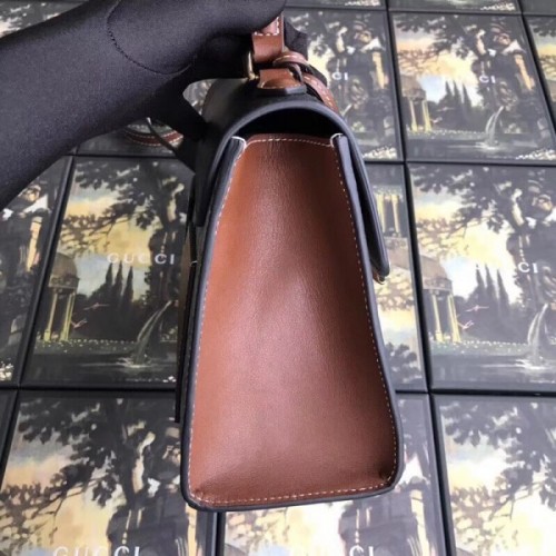 A small structured top handle bag with a key lock closure pulled straight from the archives, the key is placed in a leather key case. The shoulder strap is attached to the top handle for a simpler look that echoes a briefcase. Made in a fine grain leather, noted for its shine and softness. The GG Supreme canvas is crafted from a coated microfiber fabric with the GG motif.
