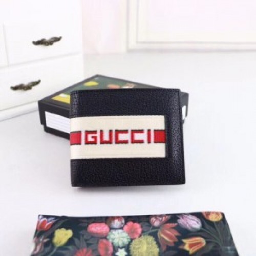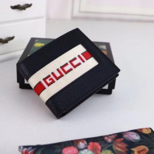 Gucci Black Stripe Leather Bi-fold Wallet