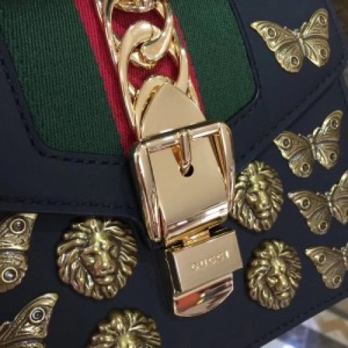 Gucci Black Sylvie Animal Studs Leather Mini Bag