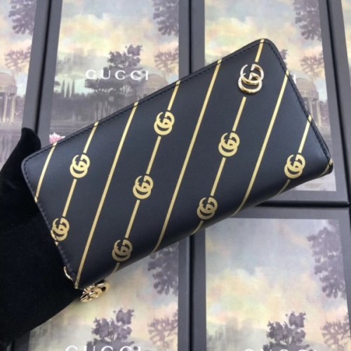 Gucci Black Zip Around Wallet With Double G stripe