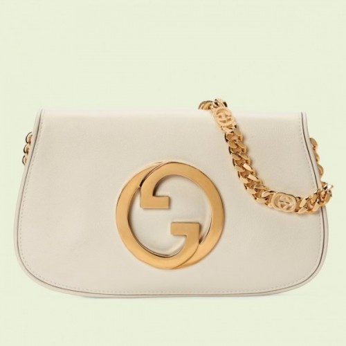 Coming from the House's archives, a round shaped version of the Interlocking G logo is reintroduced for Gucci Love Parade. Crafted from smooth leather, this shoulder bag is completed by a delicate chain strap, infusing this accessory with a refined feel.