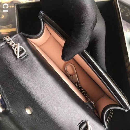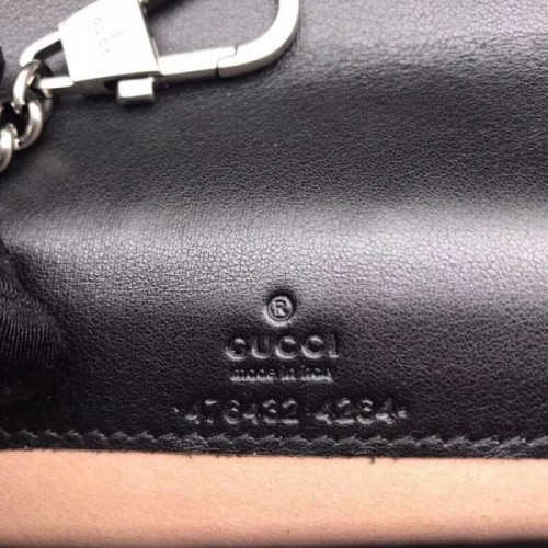 The GG is a nearly 100 year old symbol that has been brought back into the forefront of Gucci's designs in unexpected ways. The motif is presented on a Dionysus super mini bag made in velvet trimmed with crackled patent leather. The design can be worn using a chain shoulder strap or attached to a separate bag with the attached key ring.