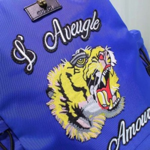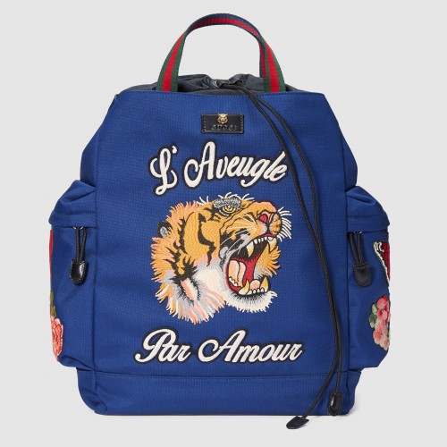 Gucci Blue Embroidered Drawstring Backpack