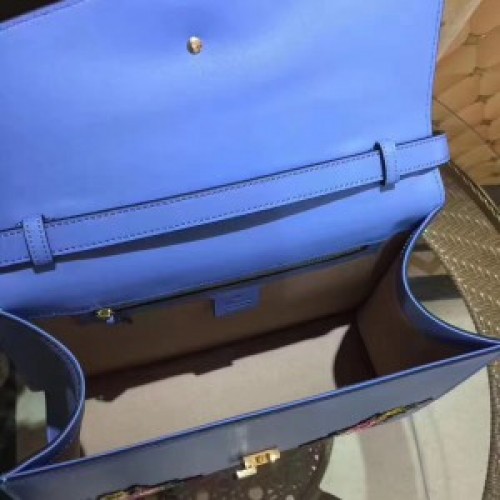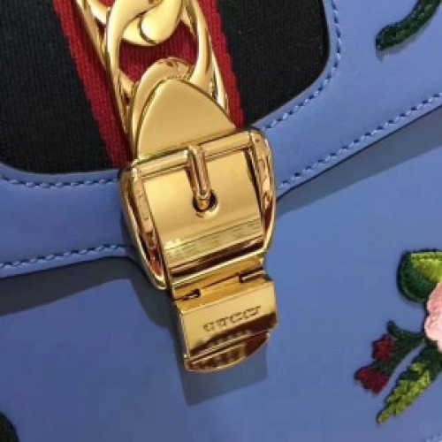 Gucci Sylvie Embroidered Mini Bag 470270 Blue Leather 2017