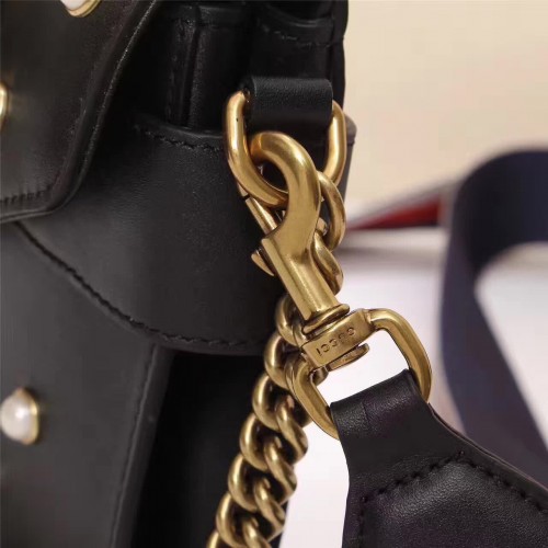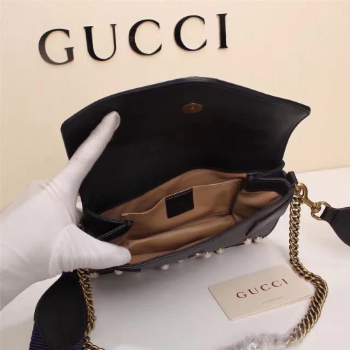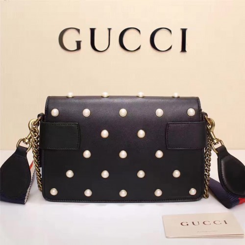 GUCCI BROADWAY LEATHER CLUTCH WITH PEARS 453778 2017 BLACK