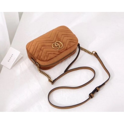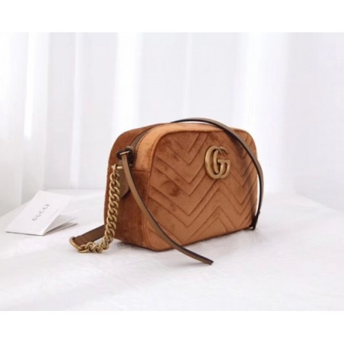 Gucci Brown GG Marmont Velvet Small Shoulder Bag