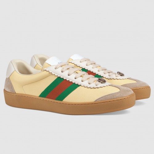 Gucci's 'G74' sneakers are a stylish and practical choice for running errands or casual days in the city. Made in Italy from textured-leather and suede, they’re defined by the label’s signature striped webbings at the sides and finished with a foiled stamp of the iconic bee motif at the heel. Wear yours with denim and dresses alike.