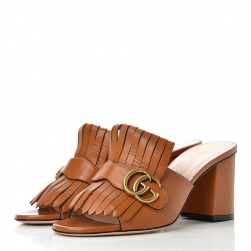 Tags: Gucci Calfskin GG Marmont Fringe Mid Heel Slide Sandals, Women's Sandals