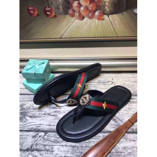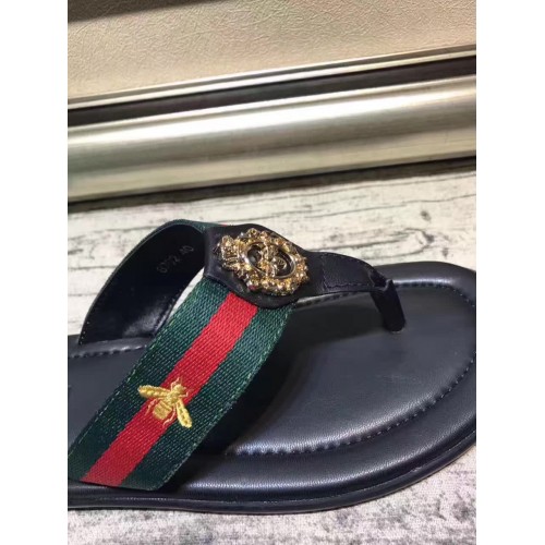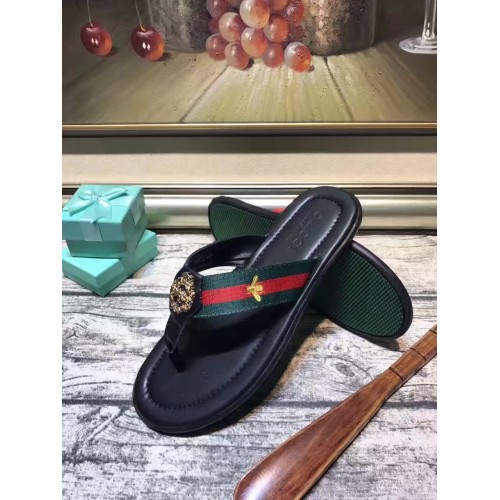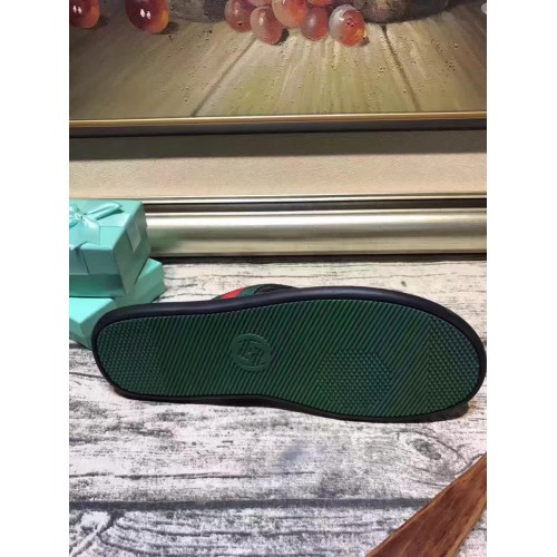 GUCCI CALFSKIN GREEN AND RED WEB BEE EMBROIDERY COPPER BUCKLE TRIM SLIPPER (AD-731107)