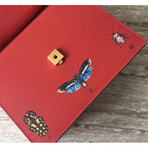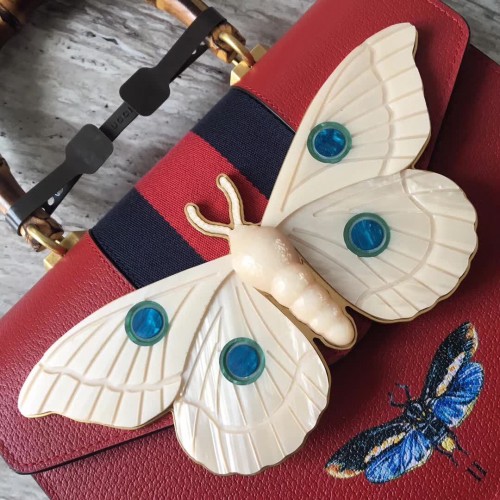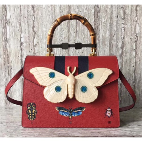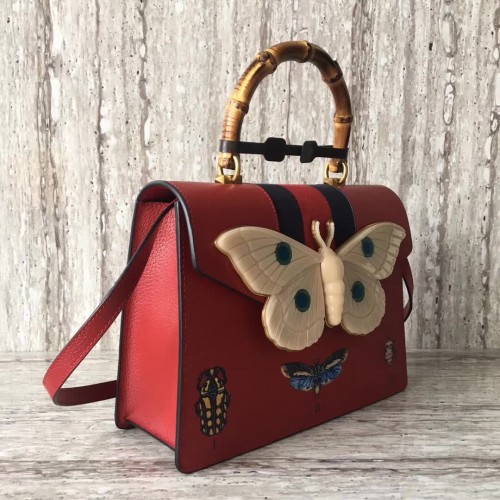 Gucci Calfskin Moth Medium Top Handle Bag 488691 Red 2017