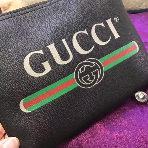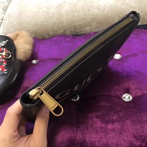Gucci Calfskin Print Leather Mini Portfolio 495665 Black 2017