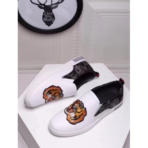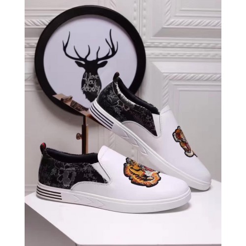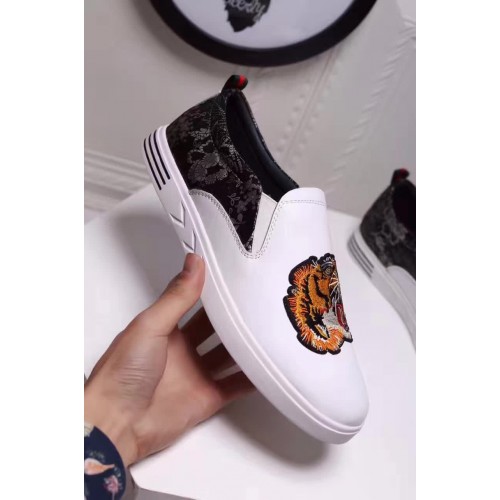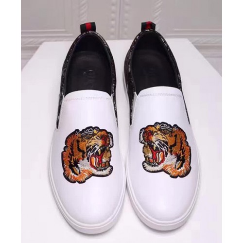 GUCCI CALFSKIN TIGER HEAD EMBROIDERY SNEAKERS FOR MEN/WHITE(AD-731105)