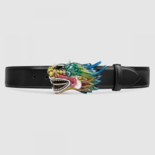 Gucci Camarel Leather Belt With Dragon Buckle