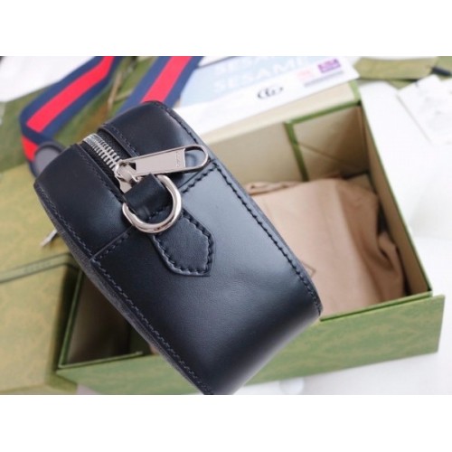 The small shoulder bag, designed with a softly structured rectangular shape that recalls traditional camera cases, in GG Supreme canvas. Presented in the black and grey combination of the House motif, the bag is completed with a wide nylon stripe in blue and red Web.
