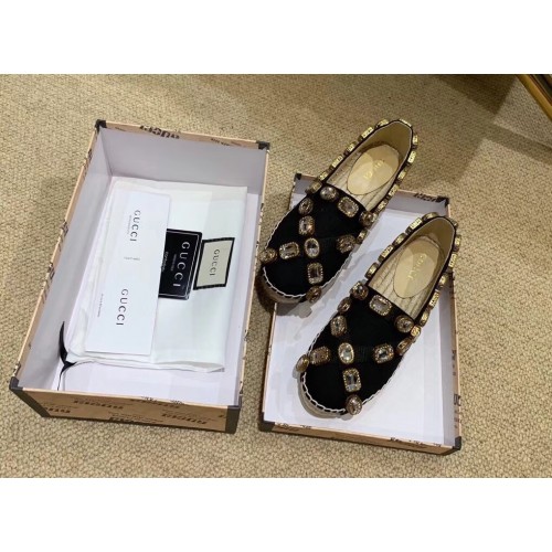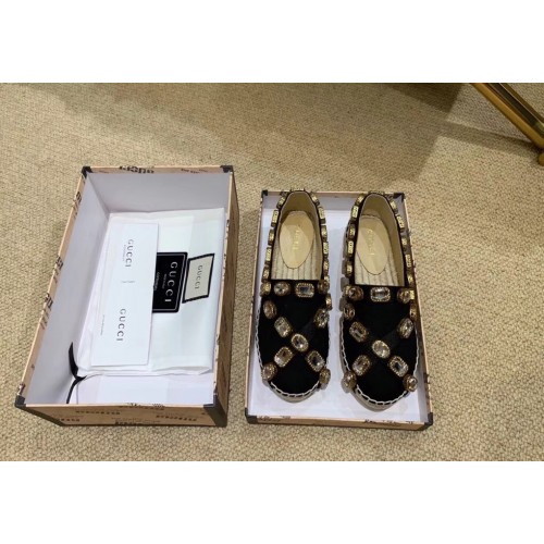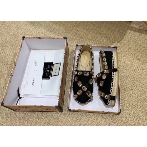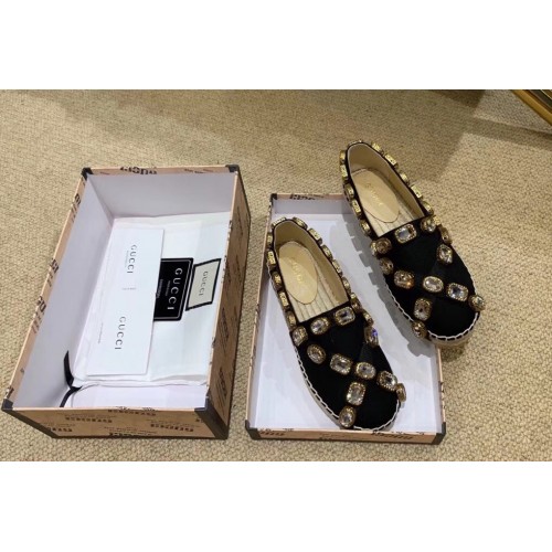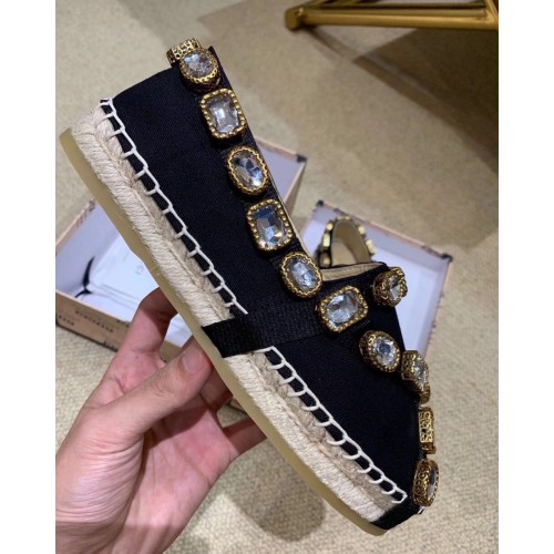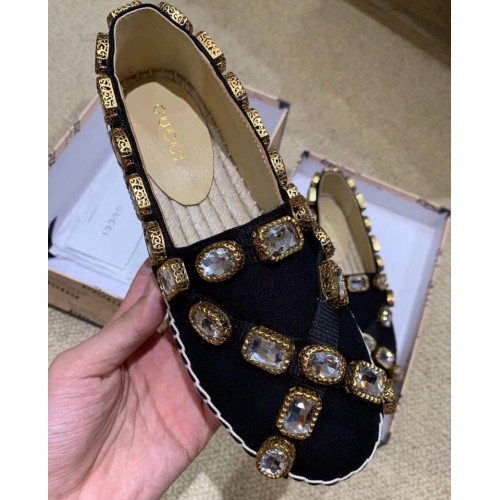 Gucci Canvas Espadrilles Black with Crystals 573025 2019