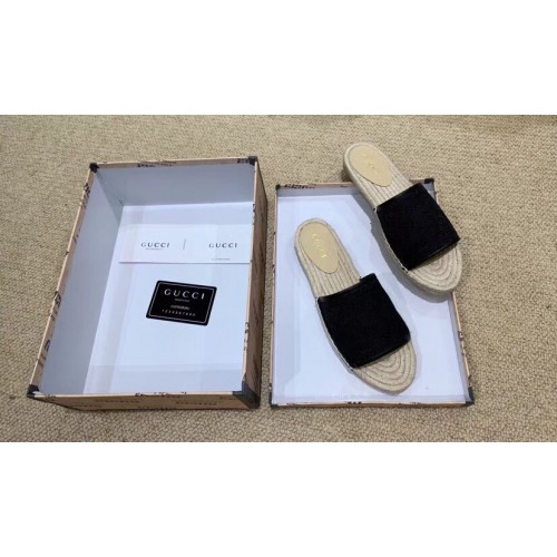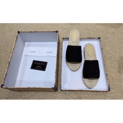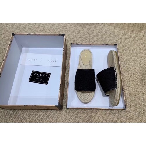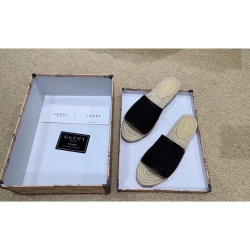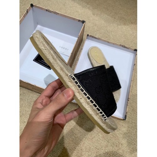 Gucci Canvas GG Espadrilles Slides Sandals Black 2019