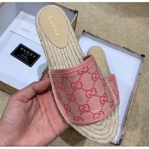 Gucci Canvas GG Espadrilles Slides Sandals Pink 2019