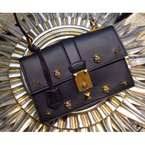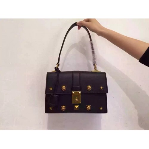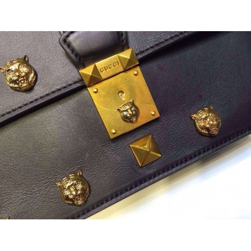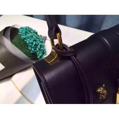 Gucci Cat Lock leather top handle bag 421997 Black Leather