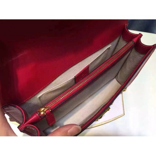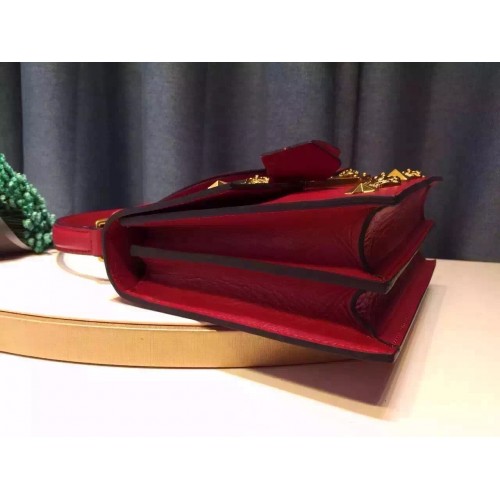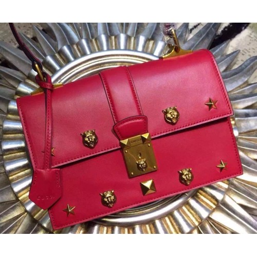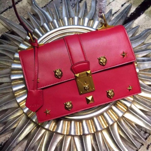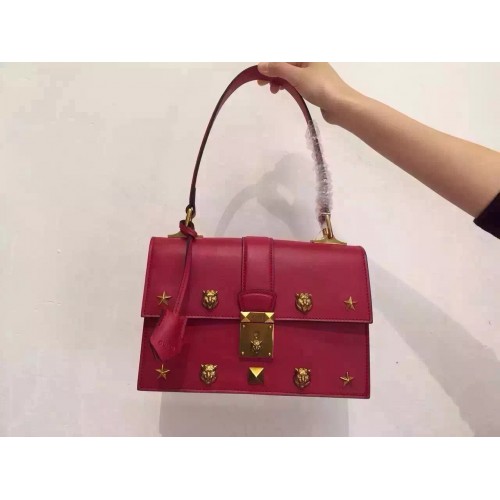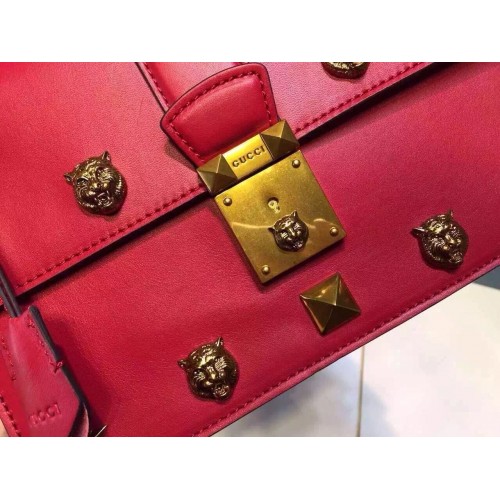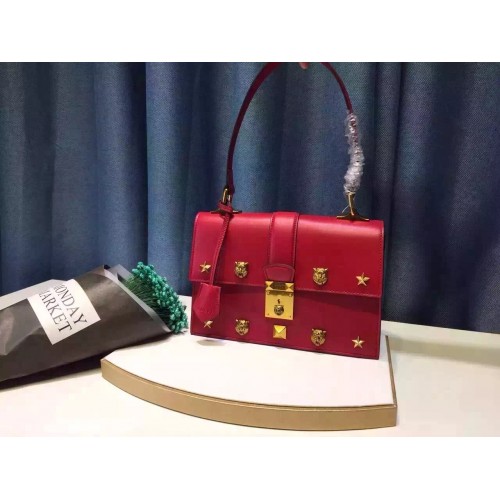 Gucci Cat Lock leather top handle bag 421997 Red Leather