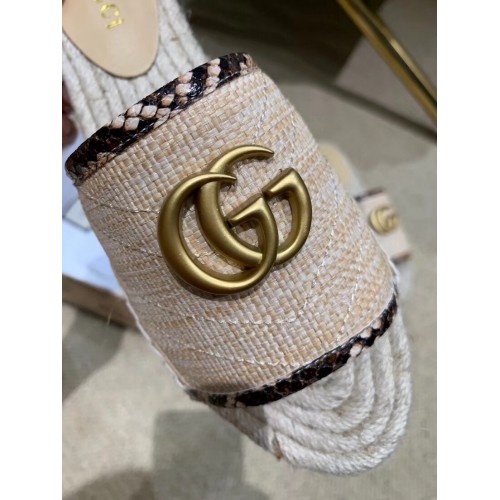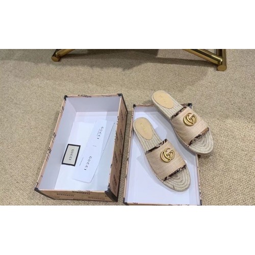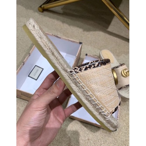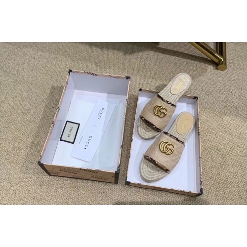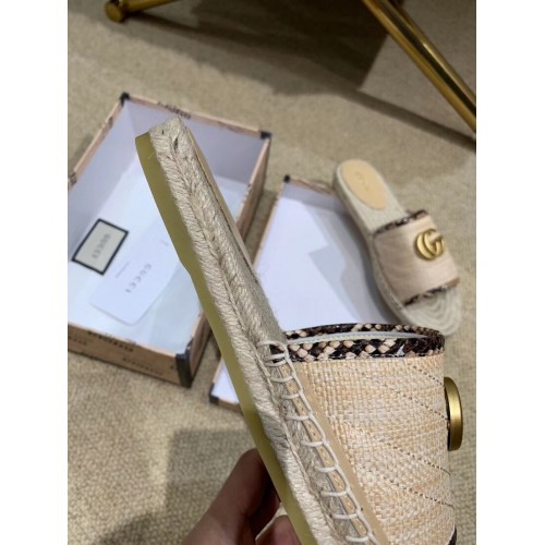 Gucci Chevron Raffia Espadrilles Slides Sandals With Double G 578554 Nude 2019