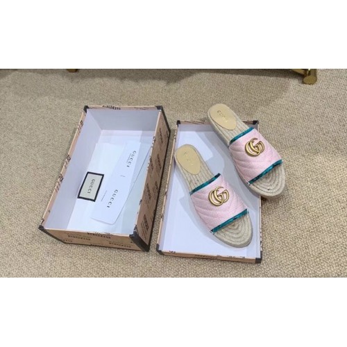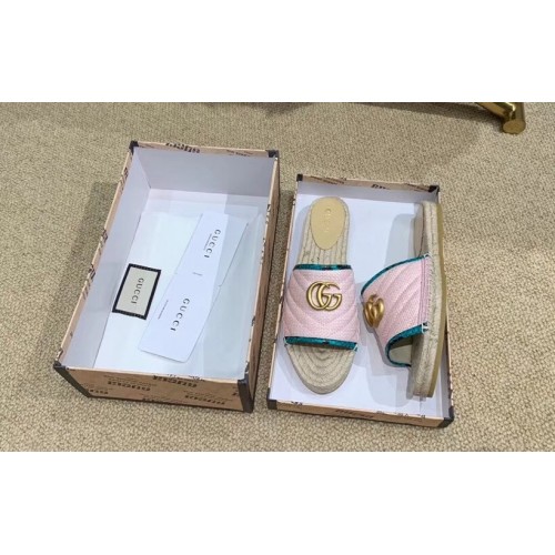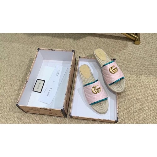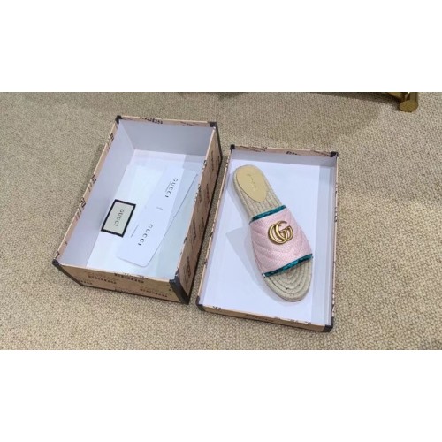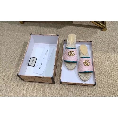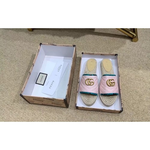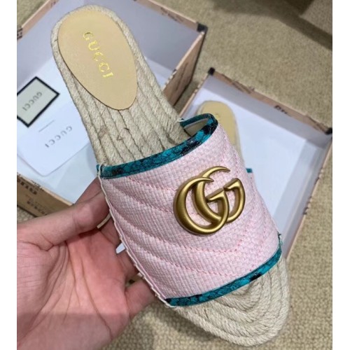 Gucci Chevron Raffia Espadrilles Slides Sandals With Double G 578554 Pink 2019