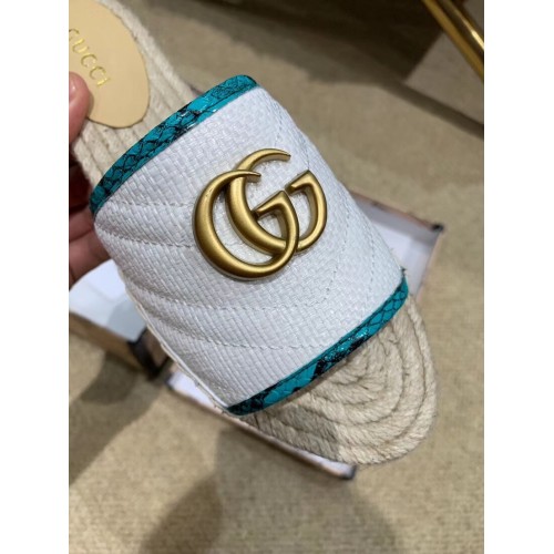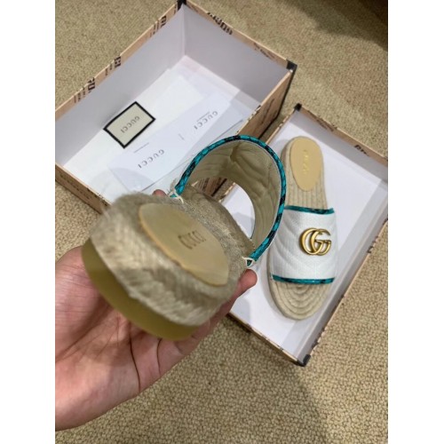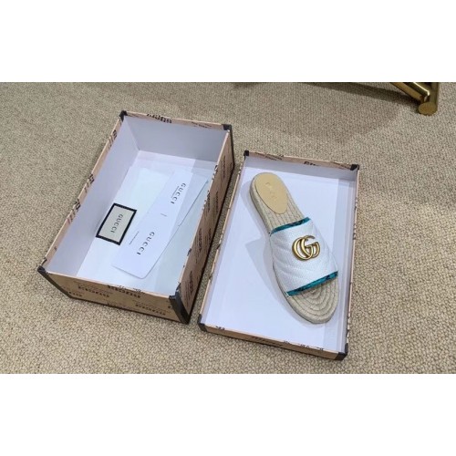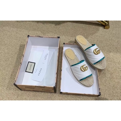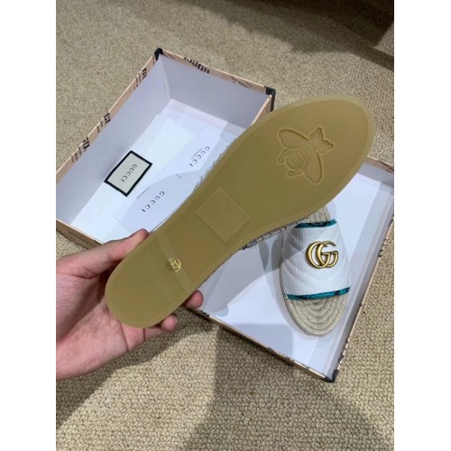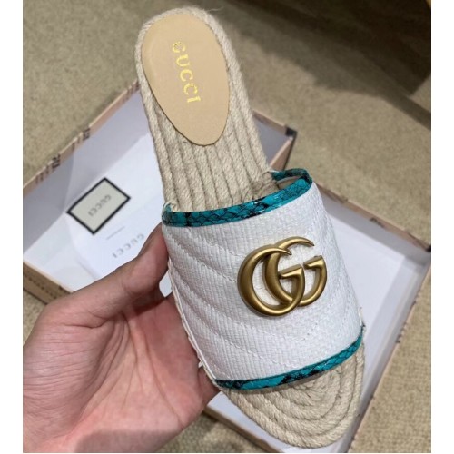 Gucci Chevron Raffia Espadrilles Slides Sandals With Double G 578554 White 2019