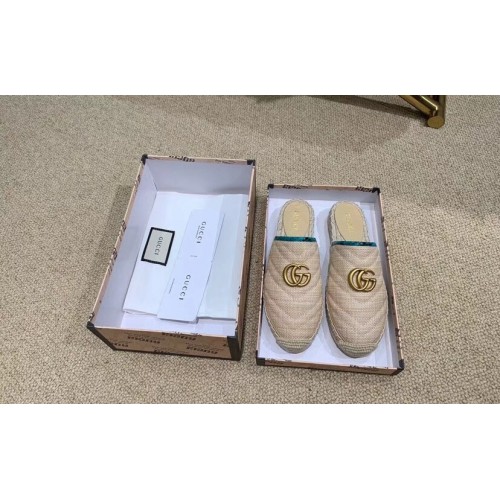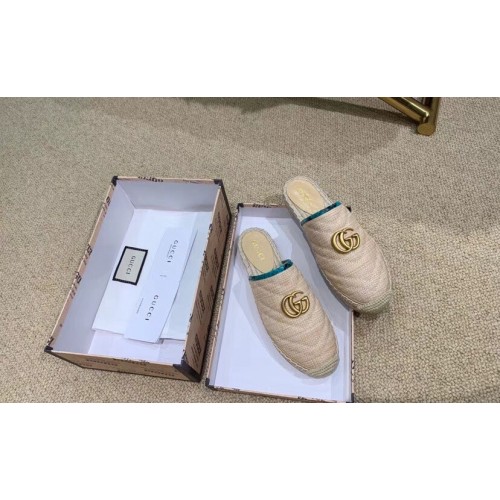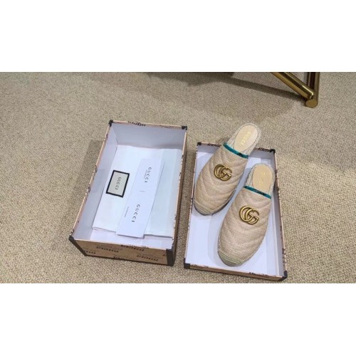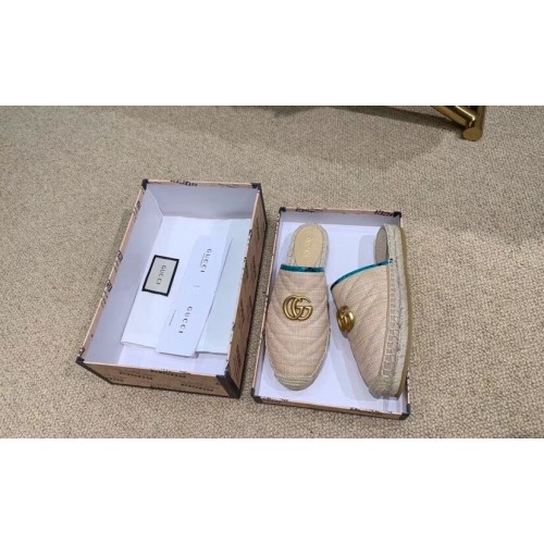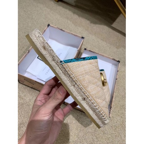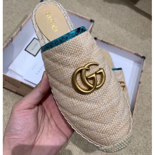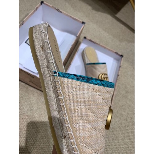 Gucci Chevron Raffia Espadrilles Slippers With Double G Nude/Turquoise 2019