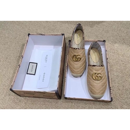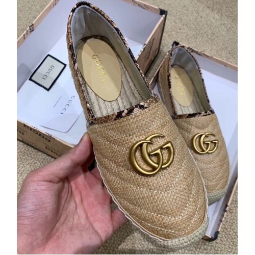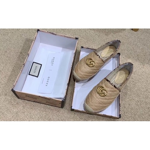 Gucci Chevron Raffia Espadrilles With Double G 577374/578547 Beige 2019