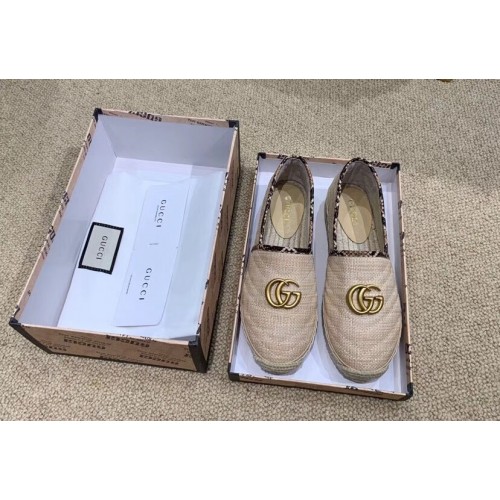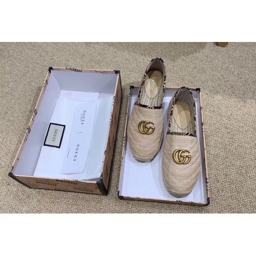 Gucci Chevron Raffia Espadrilles With Double G 577374/578547 Nude 2019