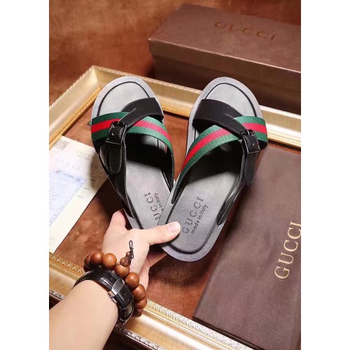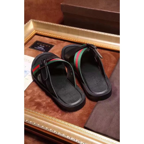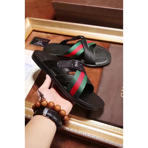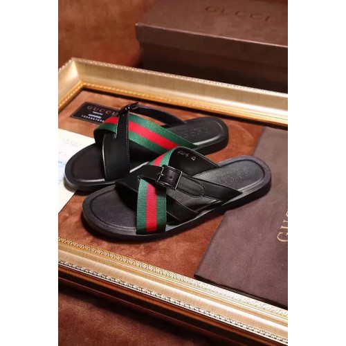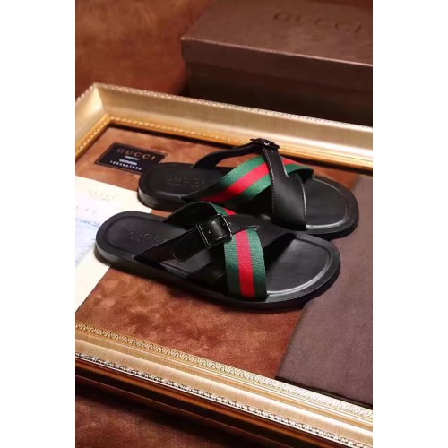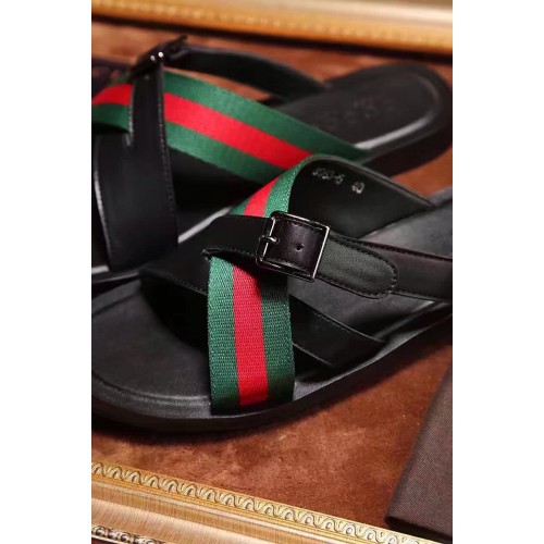 GUCCI CLASSICAL STYLE CALFSKIN SLIPPER GREEN AND RED WEB FOR MEN(AD-731103)