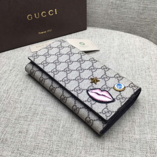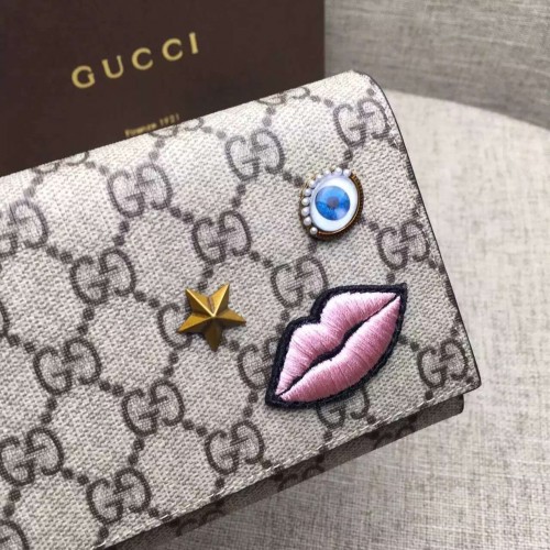 SIZE: W19cm x H10.5cm x D3cmThis continental wallet made in our gg supreme canvas has a star, eye and mouth appliqué on the front which forms a face.Beige/ebony GG Supreme canvas, a material with low environmental impact, with leather detail and star, eye, and mouth appliquésMade in ItalySnap closureSix card slots and two bill compartmentsTwo separate interior compartmentsZip coin pocketClosed: W19cm x H10.5cm x D3cmOpen: W19cm x H18cm
